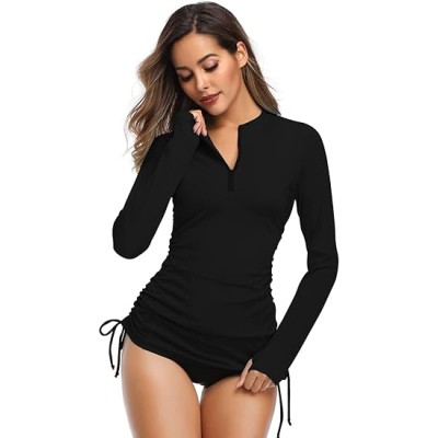 Women's Long Sleeve UV Sun Protection Rash Guard Side Adjustable Wetsuit Swimsuit Top