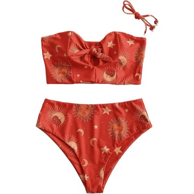Women's Tie Back Padded High Cut Bralette Bikini Set Two Piece Swimsuit