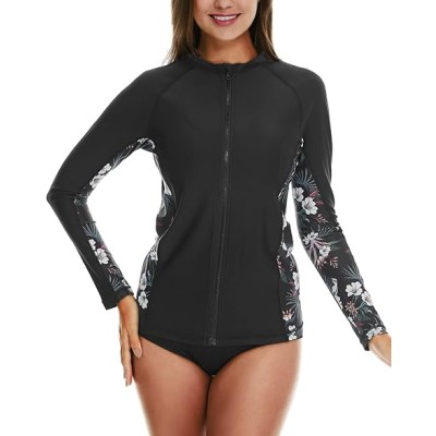 Women's Rashguard UPF 50+ Swimsuit Zip Front Sun Protection Swim Shirt Long Sleeve S-5XL