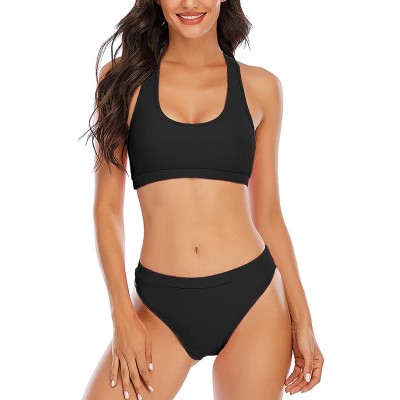 Women's Solid Racerback Athletic Bikinis Sporty Two Pieces Swimsuit Junior Teen Girls Sports Bathing Suits
