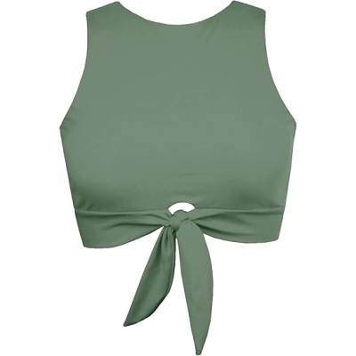 Women's Cut Out Tie Knot Front Scoop High Neck Tank Crop Top Bikini Swimsuit Top Only