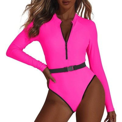 Women Rash Guard Long Sleeve One Piece Swimsuit Surfing Bathing Suit UPF 50+ Athletic Swimwear