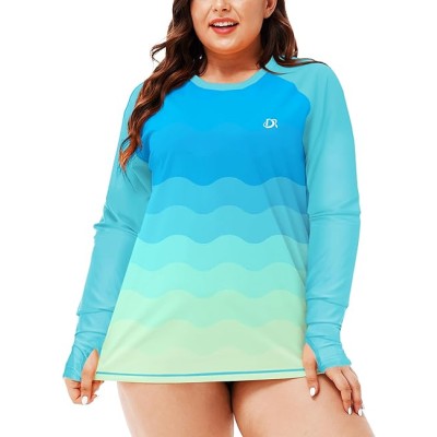 Womens Plus Size Rash Guard Long Sleeve Swim Shirts with Thumb Hole