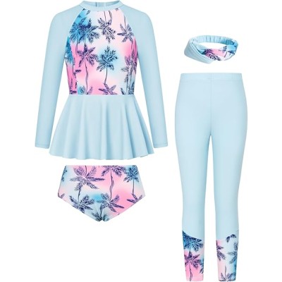 Girls Long Sleeve Swimsuit Mermaid Bathing Suit Rash Guard Swimwear 4 Piece Size 5-12