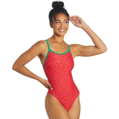 Thin Strap Athletic One Piece Swimsuit for Women - Printed Pattern Multi Color - Team Bathing Swimsuit for Competiton