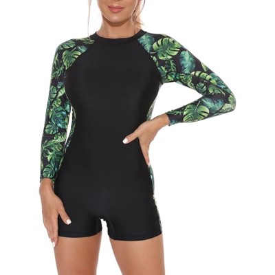 Women Rash Guard Long Sleeve One Piece Swimsuit Surfing Bathing Suit UPF 50+ Athletic Swimwear