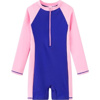 Girls Long Sleeve Rash Guard Swimsuits Zipper Bathing Suits